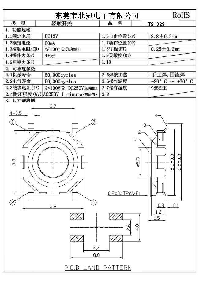 產(chǎn)品名稱:TS-028輕觸開關(guān)
