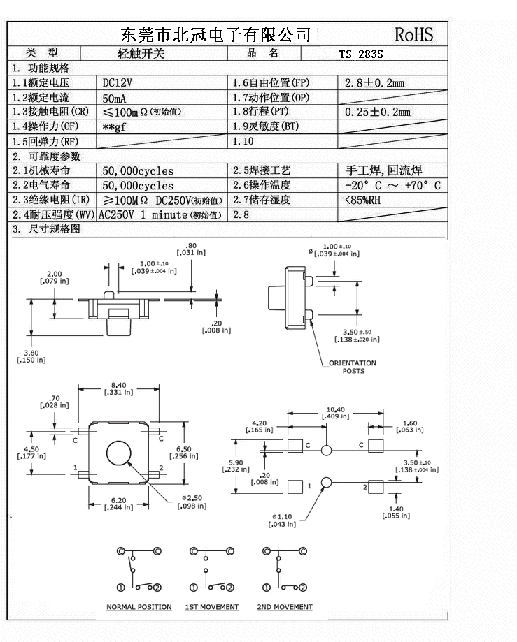 7.Travel:0.25±0.1mm
