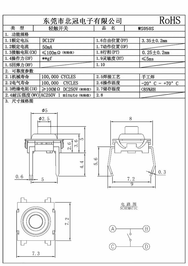 7.Travel:0.25±0.1mm