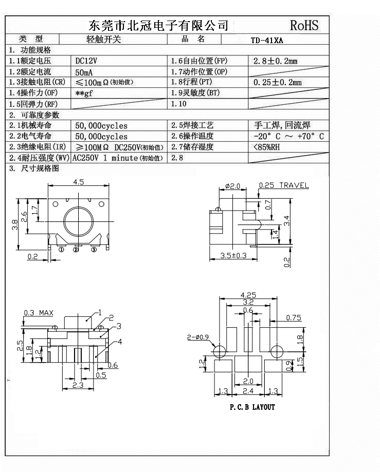7.Travel:0.25±0.1mm