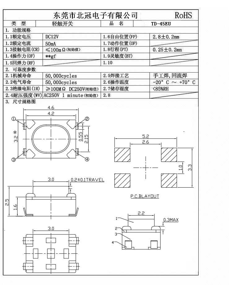 7.Travel:0.25±0.1mm