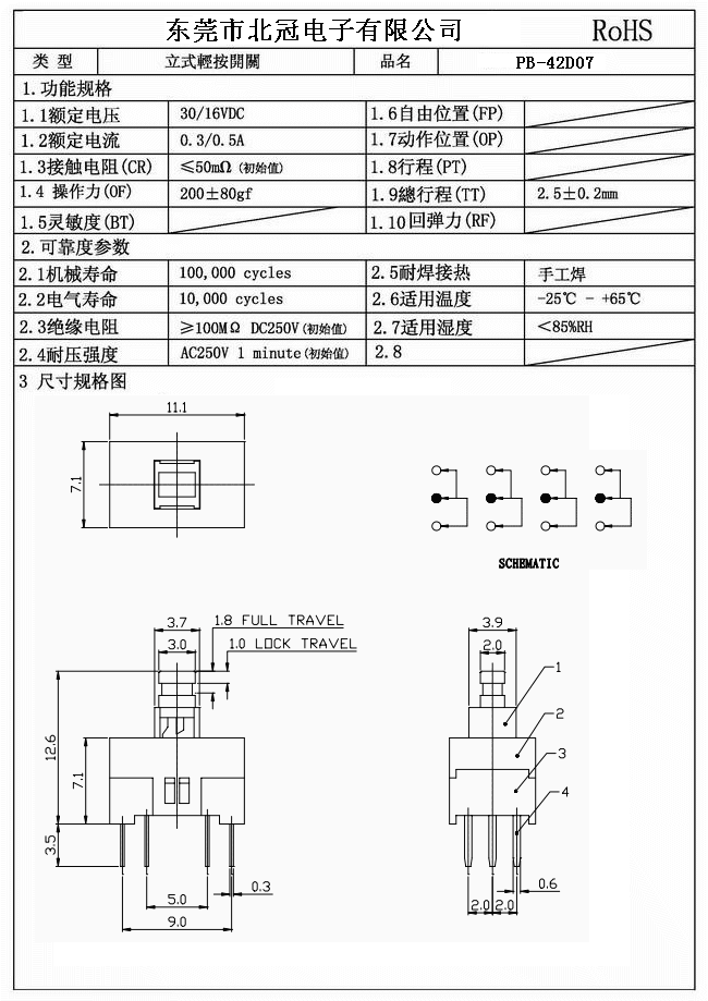 產(chǎn)品名稱:PB-42D07按鍵開關