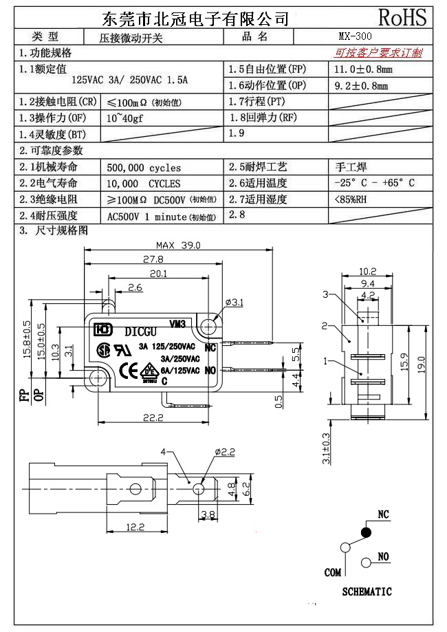 1.Rating : DC30V 0.1A