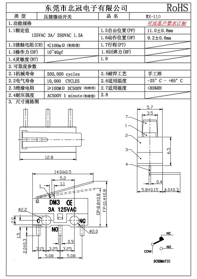 6.Mechanical Life: 100,000Cycles