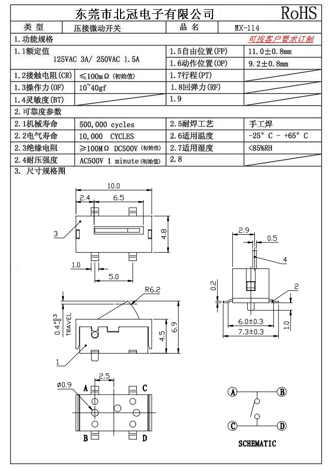 6.Mechanical Life: 100,000Cycles