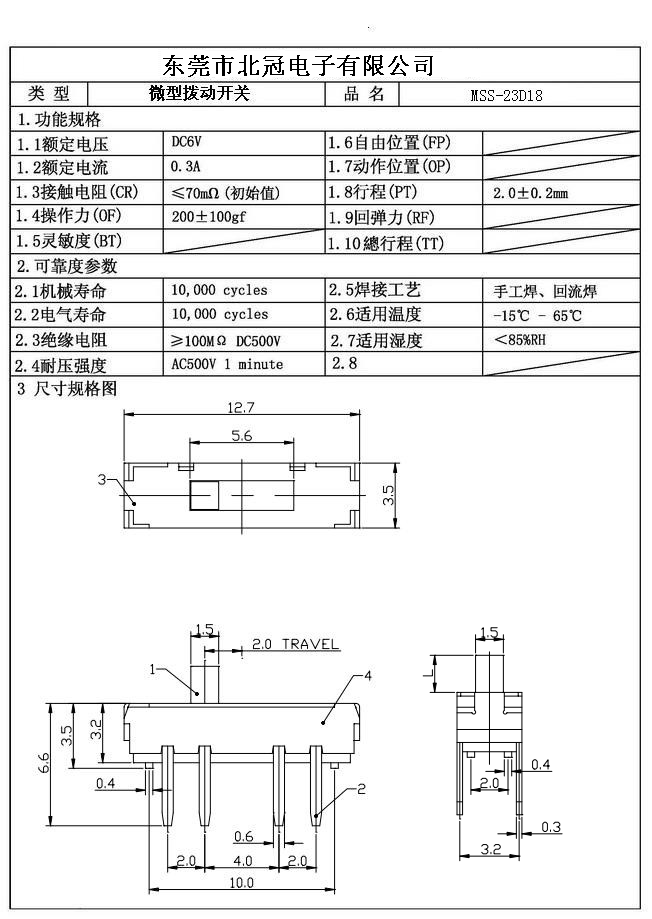 產(chǎn)品名稱:MSS-23D18撥動開關(guān)