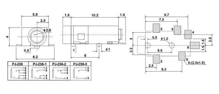 耳機(jī)插座技術(shù)參數(shù):