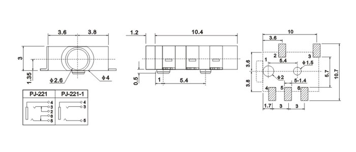 產(chǎn)品名稱:PJ-221 品名:2.5耳機(jī)插座 |