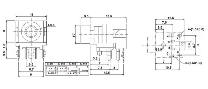 產(chǎn)品名稱:PJ-335 品名:3.5耳機插座 |
