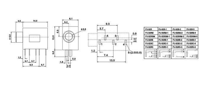 耳機插座技術(shù)參數(shù):