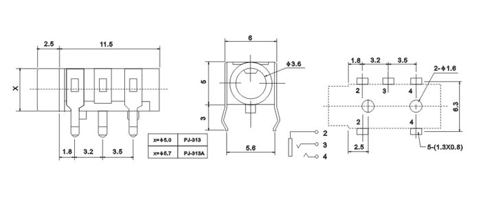 產(chǎn)品名稱(chēng):PJ-313 品名:3.5耳機(jī)插座 |