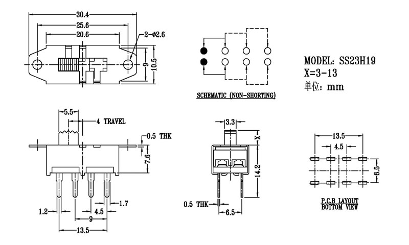 產(chǎn)品名稱:SS-23H19撥動開關(guān)