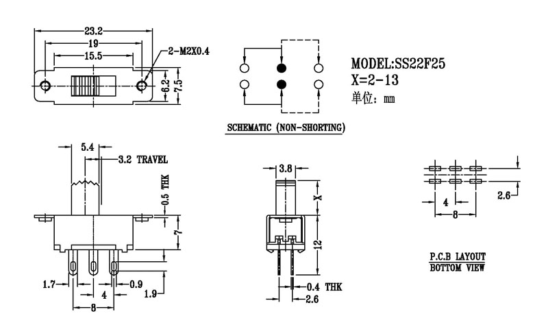 產(chǎn)品名稱:SS-22F25撥動開關(guān)